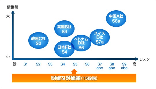 例えば、日本の「格付S6(標準だが、動向注視標準)」の企業と、中国の「リスクランク5:(平均より高いリスクレベル)」を並べても、どちらの信用リスク程度が高いのか、判断に悩みます。