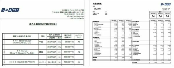 入手した調査レポートに記載された定量情報(財務情報)、定性情報(資本背景、業種、支払ぶりなど)をもとに、対象企業に海外企業格付を付与しました。