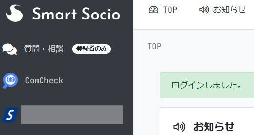 まずは、SMARTを使うための入口「Socio」にログインします。