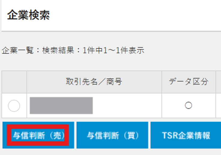 3.該当企業が表示されたら、企業名横の○にチェックし、下にある青い「与信判断」ボタンをクリック