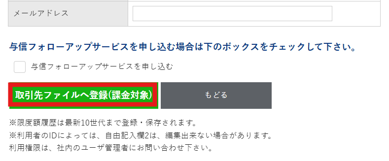 3.ページの下にある「取引先ファイルへ登録(課金対象)」をクリック