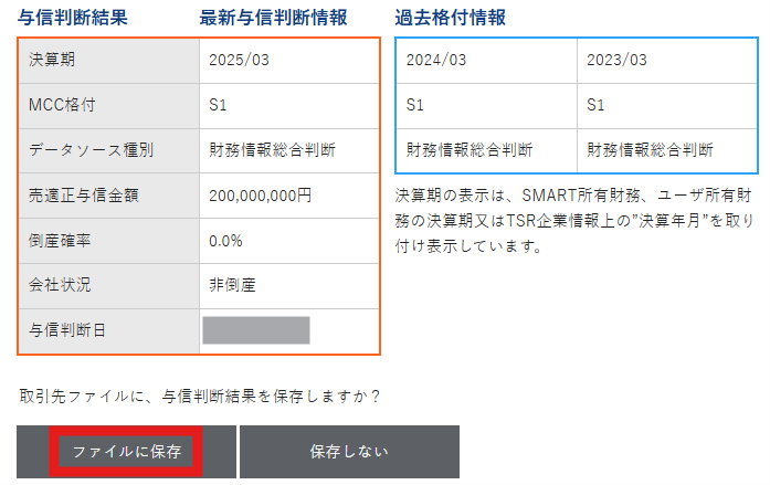 「この企業の格付情報を今後も継続的に確認したい」という場合は、取引先ファイルに登録しておくと便利です。