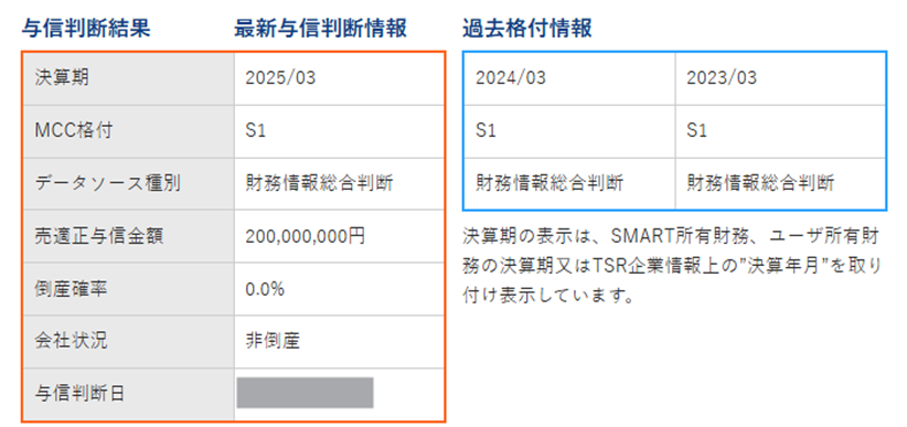 すると、その企業の**「MCC格付」(S1〜S9cの15段階評価)**が表示されます。これが、あなたのビジネス判断をサポートする重要な情報です。