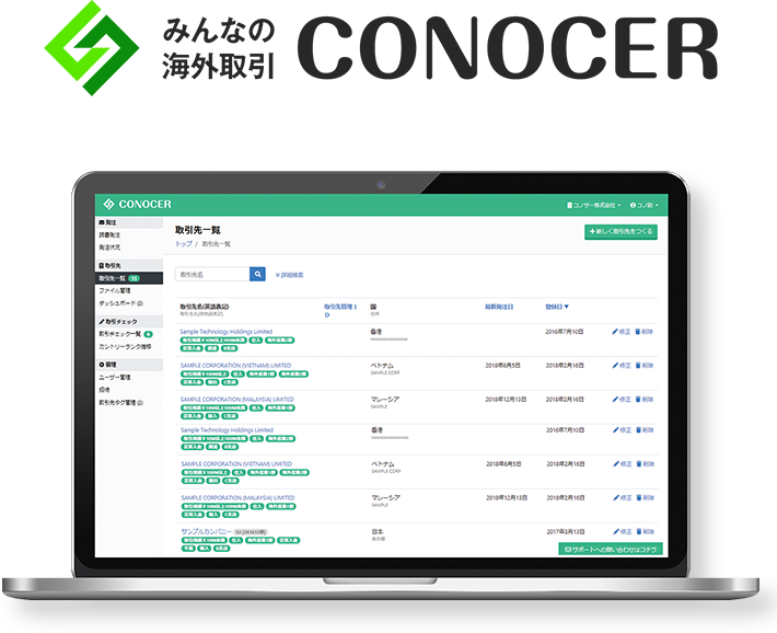 『CONOCER』 は、海外取引のリスク管理を行うため