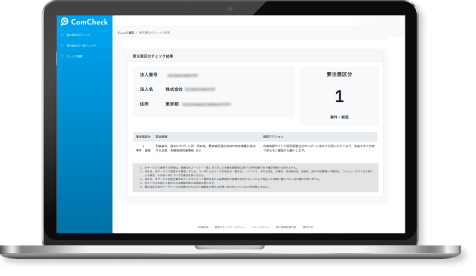 『ComCheck』は取引先の法令違反や反社会的な活動への関与などの各種コンプライアンスリスクを指標によって瞬時にチェックできるクラウドサービスです。