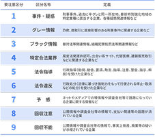「Webや新聞記事で反社チェックをしたがヒットする情報が多すぎて判断がつかない」、「担当者が1件ずつ調査しているため業務負担が大きい」、「与信管理と併せてコンプライアンスチェックも簡単に行いたい」など、お客様から多くのニーズにお応えするため、簡単・明確・スピーディーな反社・コンプライアンスチェックサービスとして誕生しました。ComCheckはコンプライアンスリスクを表す指標である「要注意区分」の提供を通してより高度なリスクマネジメントをサポートします。